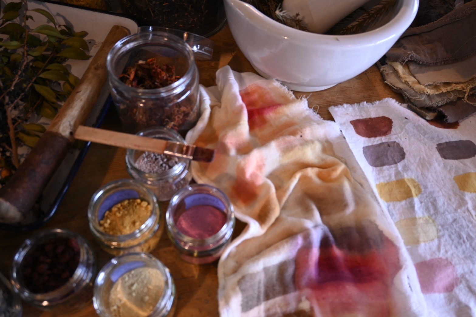 So many! The beauty of using seasonal fruits, bark, leaves, roots, and flowers, the way the same technique produces different colors, and how you sometimes need to wait for the desired shade.